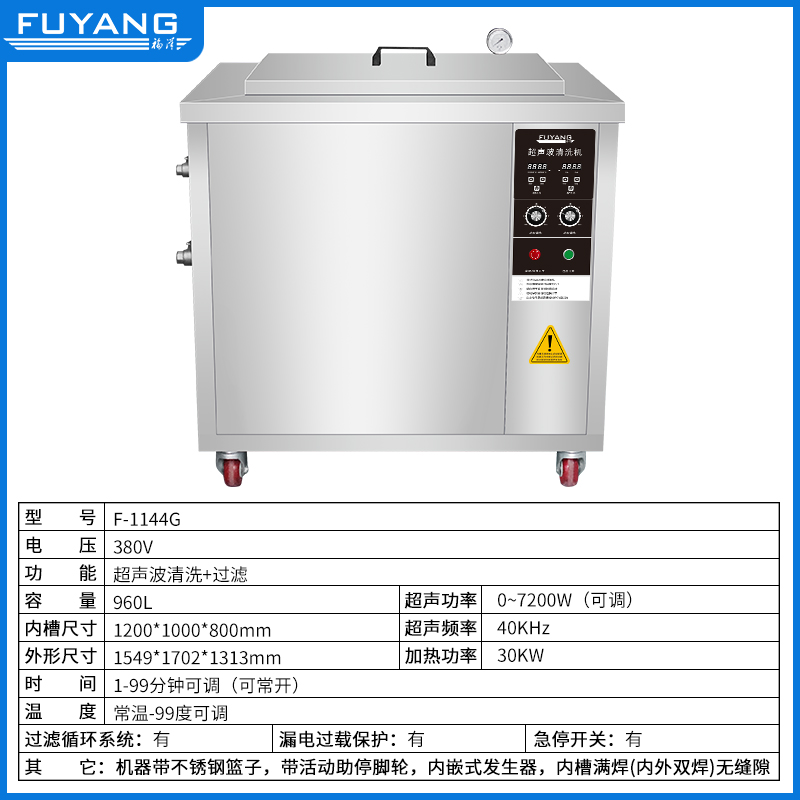 F-1144G | 960L 7200W 大型工业单槽带过滤循环超声波清洗机(可定制)